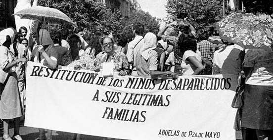 El pañuelo blanco, the white scarf, is a symbol of the Mothers' fight who since 1977 march once a week wearing photos of their children who 'disappeared' between 1976 and 1983. The scarves were originally nappies that were embroidered with the names of their disappeared children or relatives