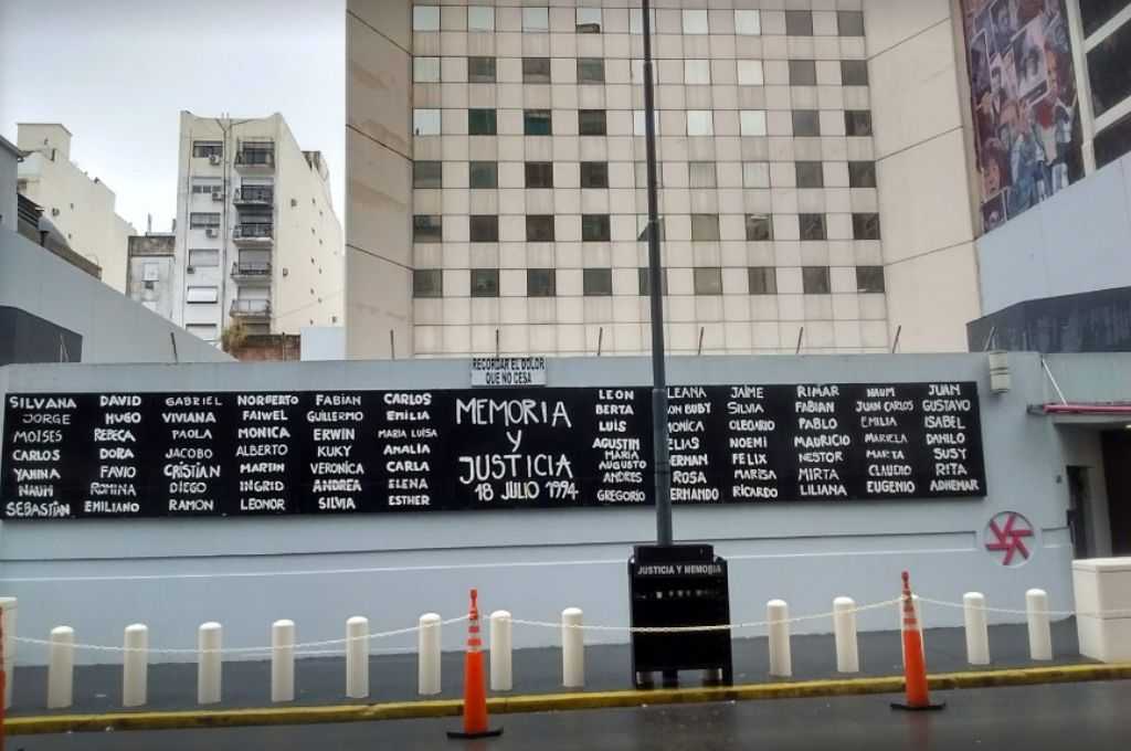 AMIA Building Memorial Plaque (1999) with the names of the 85 victims of the terrorist attack that took place on July 18 in 1994, and was the deadliest in Argentina's history. The plaque is located on the facade of the new building at Pasteur 633, on the same site as the original structure. The original AMIA building was completely destroyed in the attack, a suicide car bombing perpetrated by Hezbollah at the direction of the Iranian regime. A new state-of-the-art building was opened in May 1999 to house the Jewish community center, featuring several memorials to the victims.